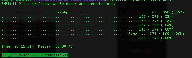 We’ve already mentioned PHPUnit, the de-facto standard unit test runner for PHP. It’s used for all our unit and functional tests.