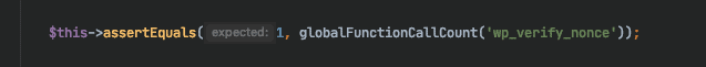 Example of mocking global functions. We either redirect the function call to a public function on the test class, or give it a hard coded return value. Our mocks also keep track of the call count, so after testing a function, we can check that our code called a WordPress global function the expected number of times: