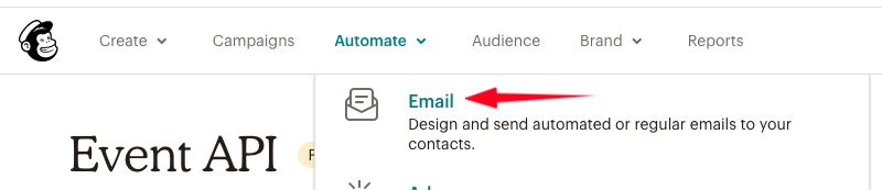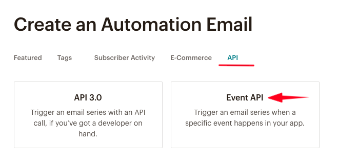 Next, we tell MailChimp we want to use an Event to trigger this automation: