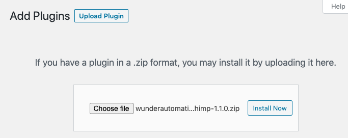 MailChimp for WunderAutomation is premium plugin that first needs to be purchased from our store. Once you have received the email with license code and download instructions. Just go ahead and install the plugin using the “Upload plugin” button: